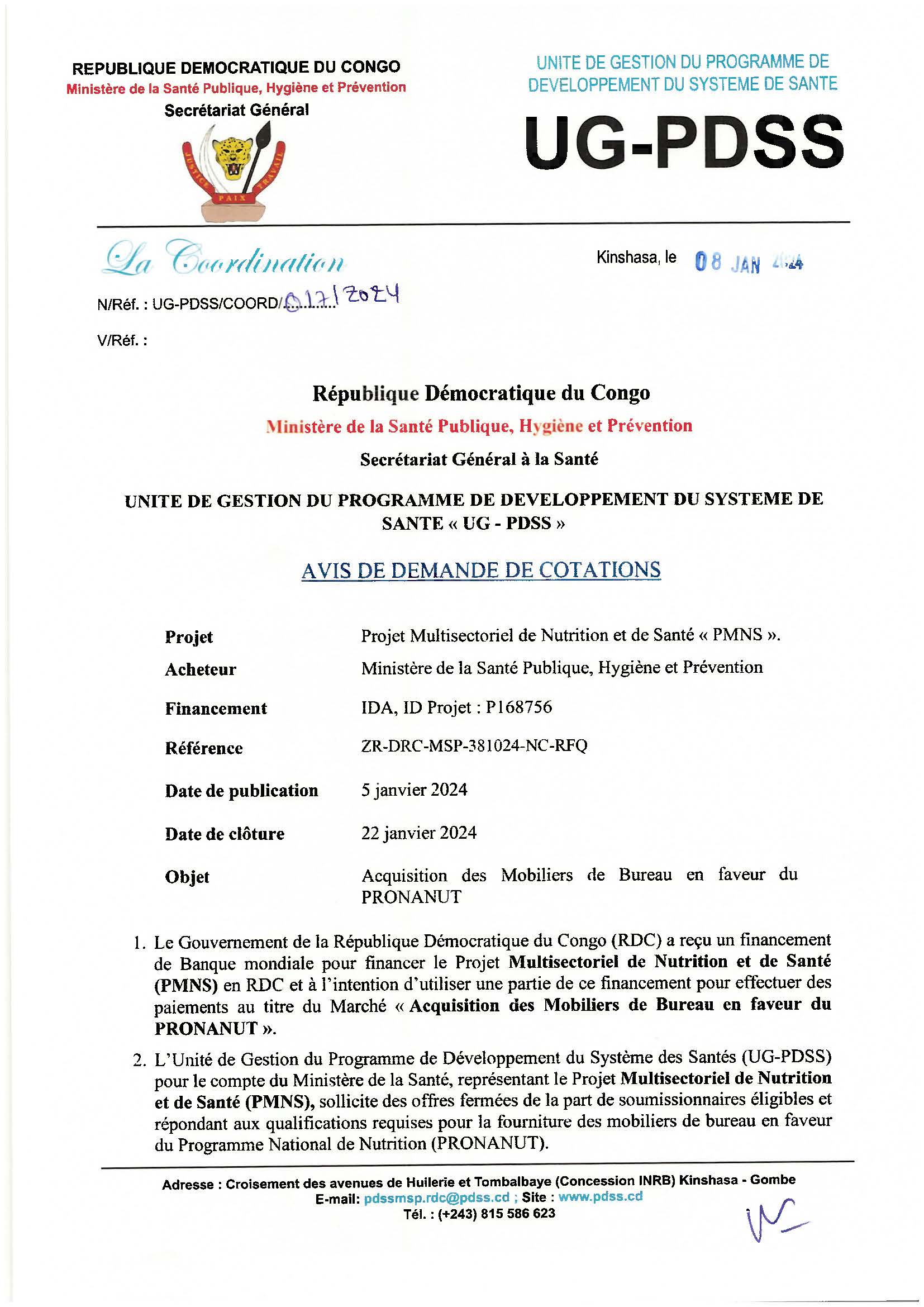 • UG-PDSS un programme du Ministère de la santé chargée de coordonner la gestion de l’ensemble des projets financés par la Banque Mondiale