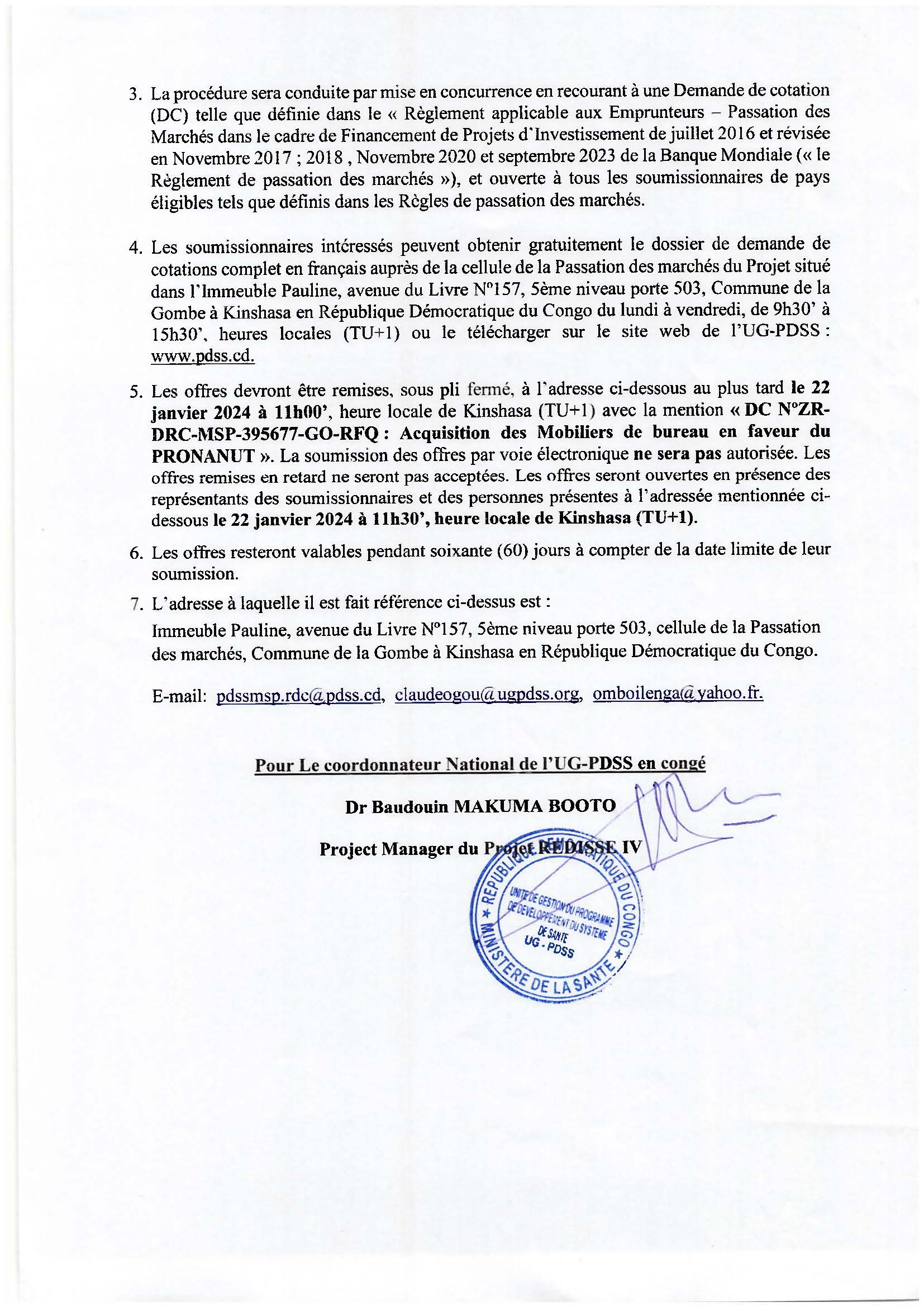 2. Acquisition des Mobiliers de Bureau en faveur du PRONANUT